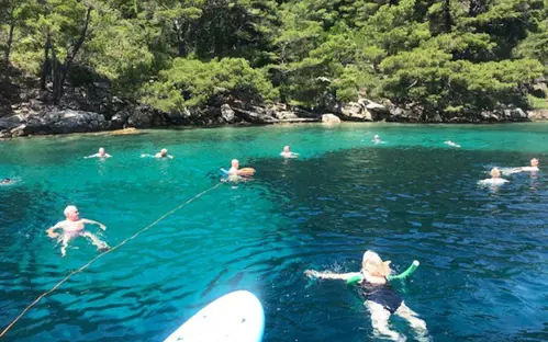 One of the highlights for all of us was the swim stops. Every day the crew stopped off at a little secluded area in between islands and let us get off for a swim and the water was beautiful. To start with, only a few of us jumped in, but by the end of the holiday nearly everyone was taking advantage of the break for a cooling dip in the sea. There was even a little platform at the back of the boat so we could get in and out of the water easily.
