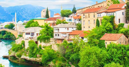 Inland you'll find Bosnia and Herzegovina, home to one of the Balkan's most iconic cities - Mostar. Situated at the Neretva River, this historic city is famed for its enchanting 'Old Bridge'. Bosnia's capital, Sarajevo, is revered for its cultural and religious diversity. You'll find the Ottoman-style Emperor's Mosque in the same neighbourhood as the Catholic Sacred Heart Cathedral, the Orthodox Church of the Nativity and a Jewish synagogue.