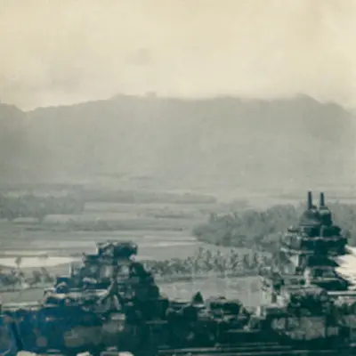 In 1910 she set off on further travels to West Australia, Java, Borneo and Burma. She spent several months on the island of Java, visiting the site of Borobudur, a large Buddhist monument situated in central Java, Prambanan, the largest Shiva temple in Indonesia and also the volcanic crater of Mount Bromo. With a keen interest in geography and travel, Gibbes was elected as a Fellow of the Royal Geographical Society in 1922. She was a prolific photographer and accumulated a vast collection of imagery during her travels. Her photographs, donated to the Royal Geographical Society in 1943, provide a valuable visual record of many parts of the world at the beginning of the twentieth century.