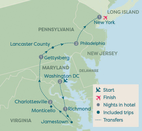 Today we’ll explore the USA's original capital, Philadelphia, a liberal melting pot of people and cultures. It's here that the Declaration of Independence was written, signed and introduced in 1776. Our morning walking tour will show you the highlights of the 'most historic square mile in the United States' including the Liberty Bell, Independence Hall, Congress Hall and Christ Church, where George Washington and Benjamin Franklin once worshipped. We’ll end with a short visit to the Museum of the American Revolution before some time for lunch at the historic Reading Terminal Market where you will find plenty of local produce to sample from Amish pretzels to a Philly cheese steak. Ther will be free time this afternoon if you wish to visit one of the many museums and galleries along the Benjamin Franklin Parkway, including the Philadelphia Museum of Art and it’s famous “Rocky steps”.