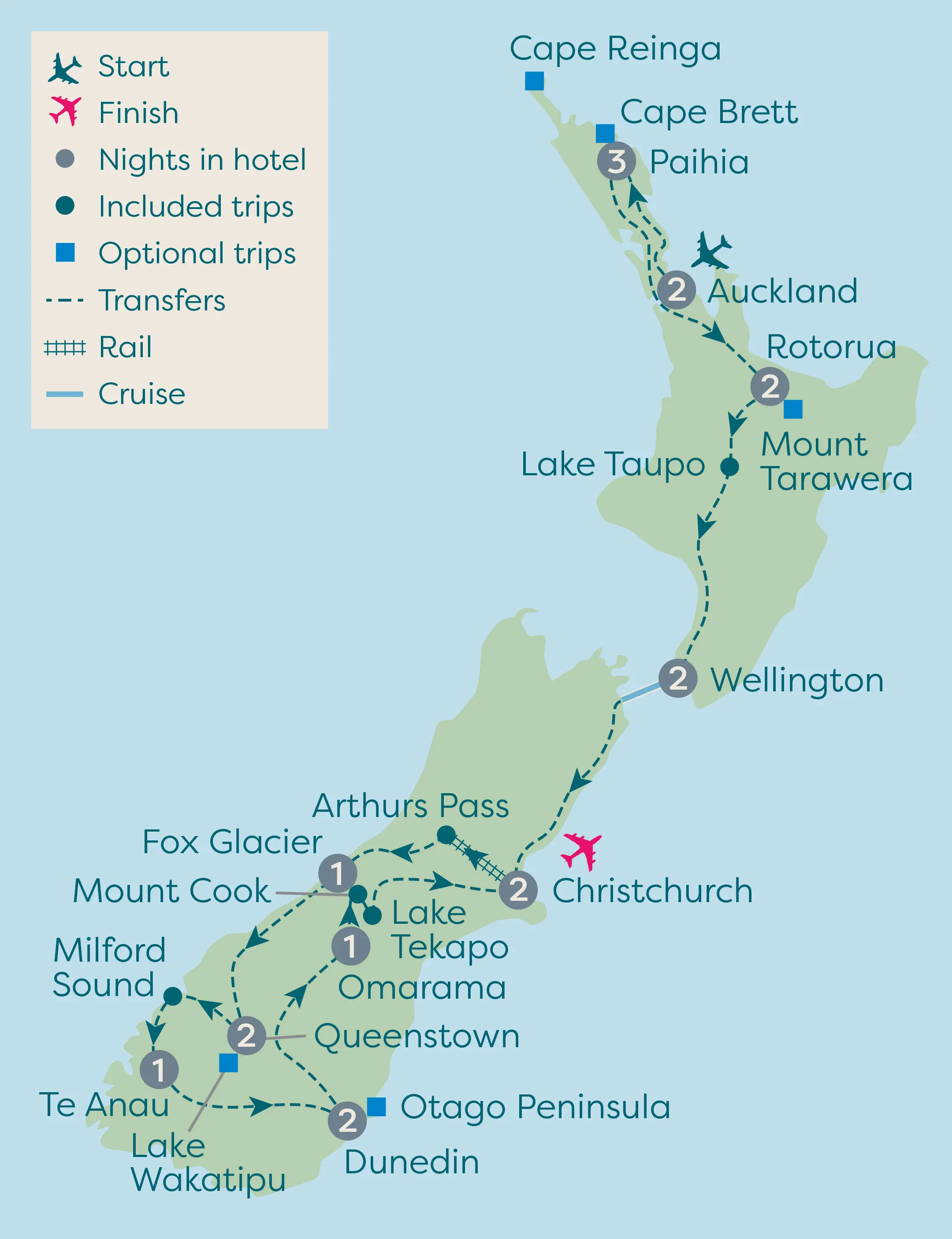 This once-in-a-lifetime holiday takes you halfway around the world to New Zealand and is packed full of unforgettable moments. Planning such an epic trip can feel exciting and daunting in equal measure. How do you fit in all the must-see sights? How much time should you spend in each place? Fear not, with our many years of experience, we’ve created the perfect itinerary.