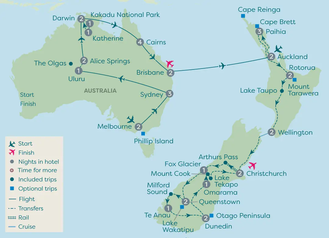 Make the most of your journey and visit both Australia and New Zealand. First its Australia; Iconic cities, famous landmarks and natural wonders are waiting to be discovered as you journey from Melbourne to Brisbane. Then take a once-in-a-lifetime holiday to New Zealand featuring the best of both the North and South Islands.