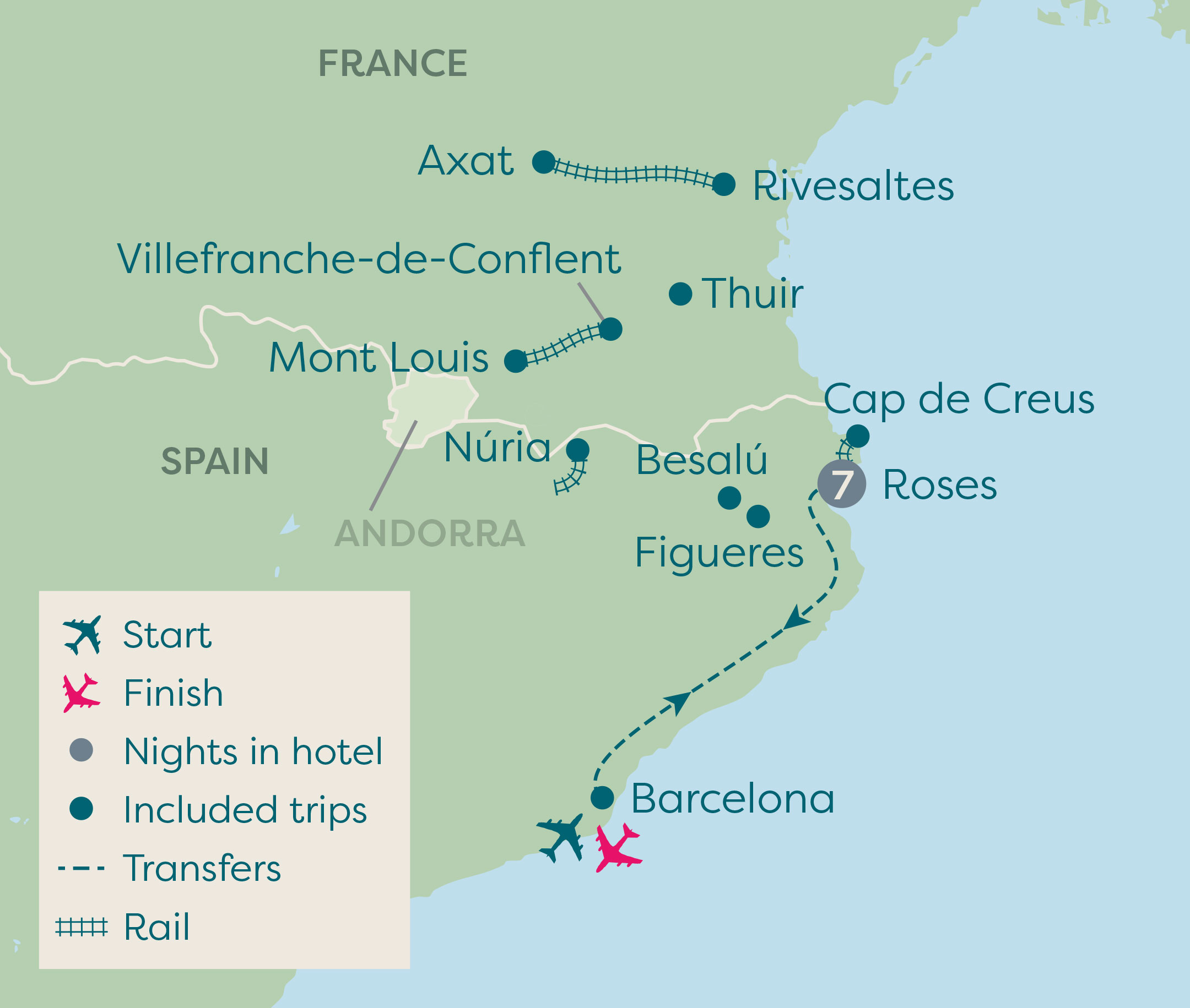 The Pyrenees mountain range divides Spain and France and offers spectacular opportunities for exploration, and that's what this holiday is all about! Today's journey is on a fun little road train, the Trenet de Cadaques, that passes through the narrow streets of Cadaques and Port Lligat. Enjoy the stunning panoramic views of the village and its coves with crystal-clear, deep blue water. This afternoon is free to do as you wish, you might want to tackle a few laps of the hotel's swimming pool, hit the gym or maybe treat yourself to a spa treatment. The beach is close by, so soaking up the sun and the sea views is another tempting option!