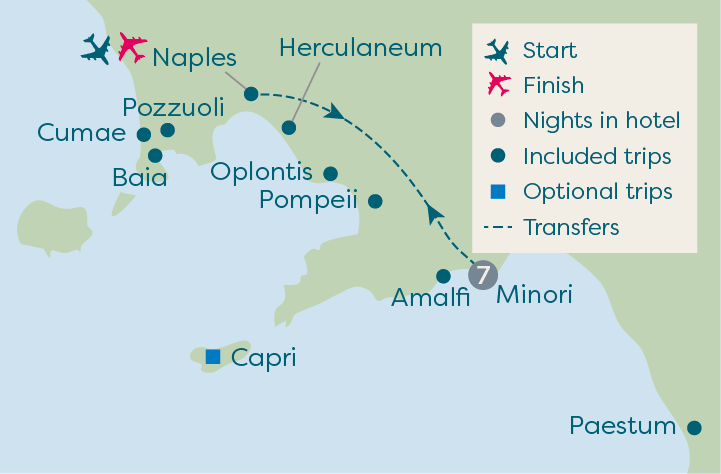 Before you reach historic Paestum today, a treat is in store in the shape of the beautiful Amalfi Coast Drive. At your journey's end you'll discover three magnificent Doric temples. It's incredible to think that 2,500 years after they were built, the temples of Ceres, Neptune and Hera are still standing relatively intact. There's time too to step inside the museum here, which houses fascinating artefacts.