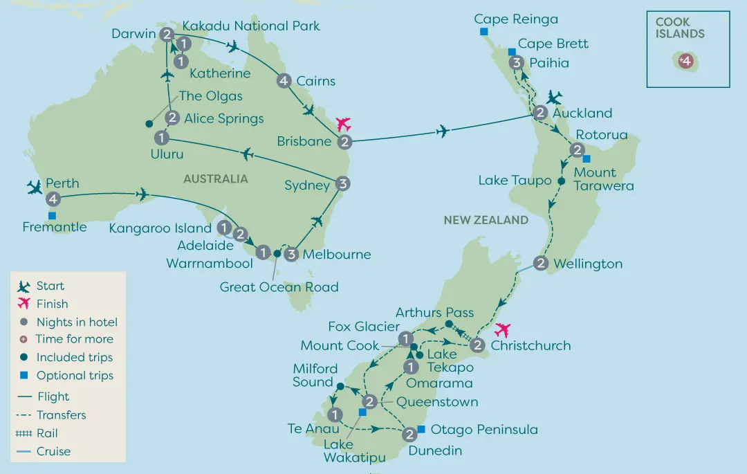 Iconic cities, famous landmarks and natural wonders are waiting to be discovered as you journey from Melbourne to Brisbane. Then take a once-in-a-lifetime holiday to New Zealand featuring the best of both the North and South Islands