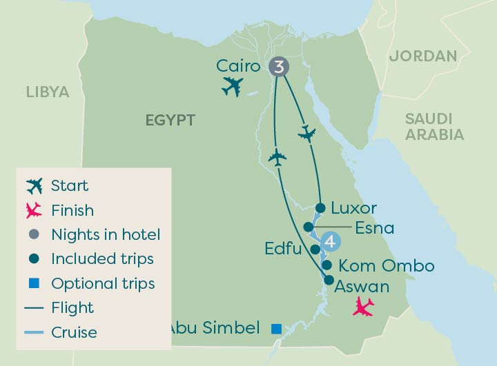 Prepare to be astonished at the Pyramids of Giza, discover bustling Cairo and relax on a 4 night cruise along the Nile where island temples, ancient kingdoms and Egyptian hospitality await.