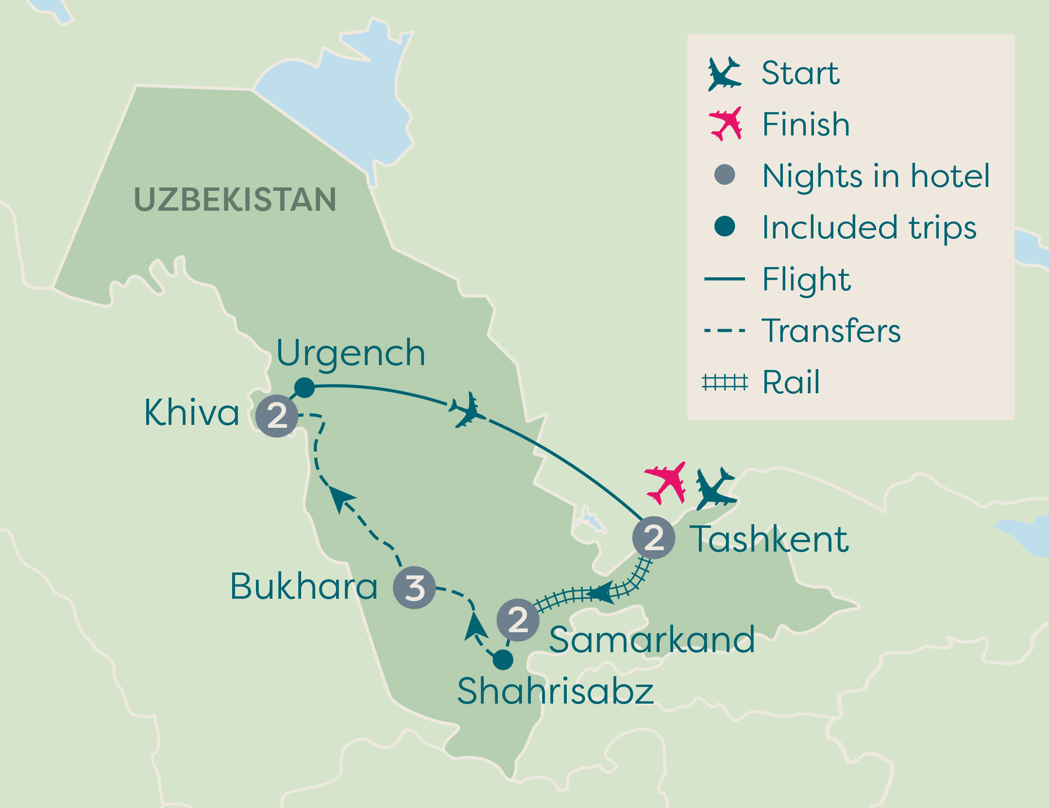 Get ready to discover blue-domed mosques and bustling bazaars in the cities of Tashkent and Samarkand, before exploring the fascinating holy city of Bukhara and the Khiva’s UNESCO-listed Old Town. Along the way, you’ll see the undulating dunes of the Kyzylkum Desert and immerse yourself in centuries-old traditions. From dining with a local family to watching a stunning performance of dance, this fascinating itinerary is packed full of memorable experiences. Plus, you’ll enjoy plenty of free time for your own exploration of this historic and beautiful land at the crossroads of Central Asia.
